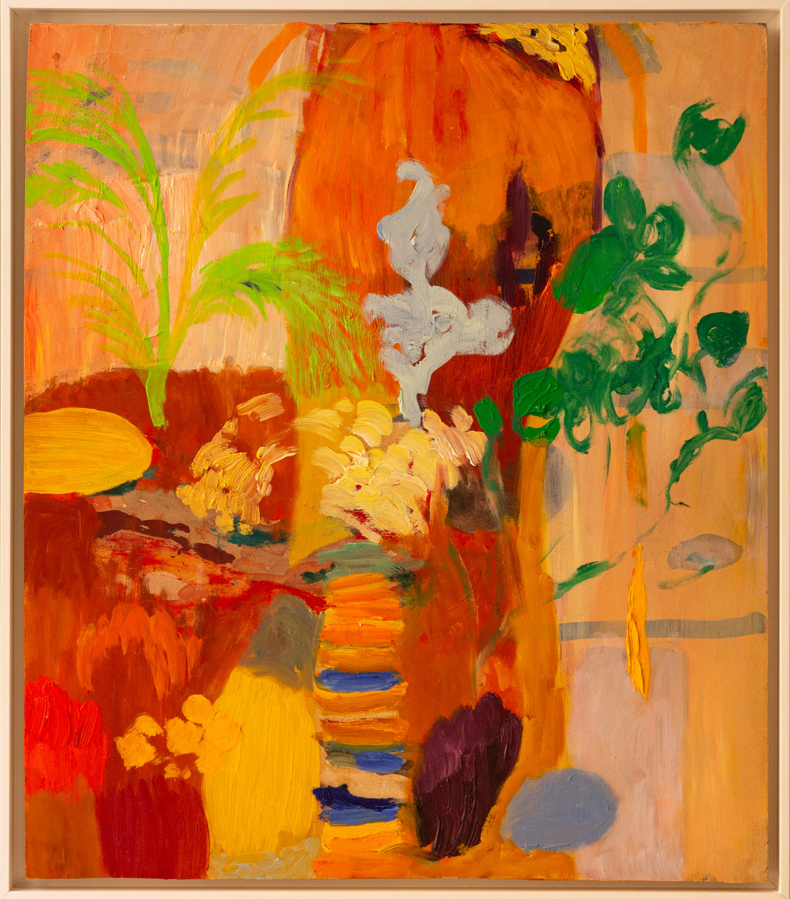 | Tekovuosi | 2025 | Tekniikka | Öljy levylle, kehystetty (valkoiseksi maalattu tammikehys) | Koko | Kehystettynä 49,5 x 43,5 cm |
