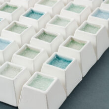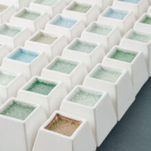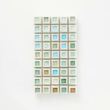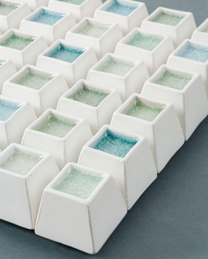 Arni Aromaa is an industrial designer who’s been running a studio in Helsinki since 1996. He has won numerous design awards including the Finnish State Prize for Design in 2012. As well as industrial design, he has a passion for sculpting and ceramics. Lately, he has been exploring the possibilities to combine ceramics with glass through the wood firing process. Magic Ponds are a result of these explorations. The pressed ceramic parts combined with the molten coloured glass, result in expressive wall sculptures.