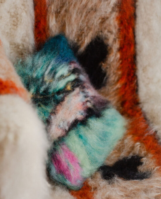 | Year | 2026 | Medium | Hand-tufted rya: mohair, wool, silk | Size | 33 x 34 x 8 cm |