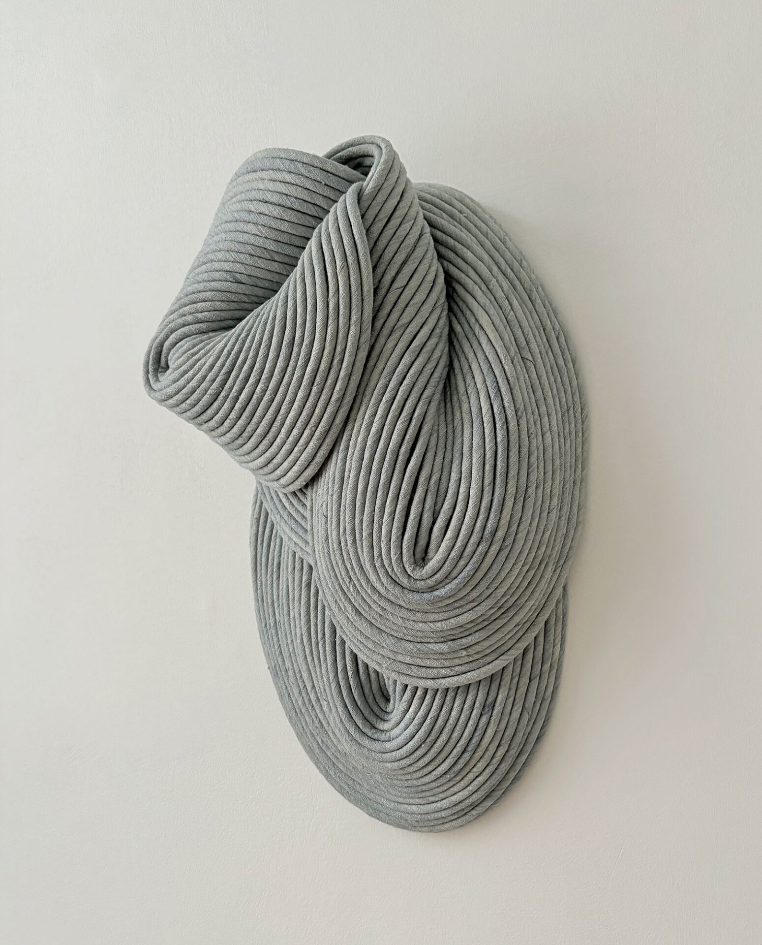 Sini Villi (b. 1980, Nivala) is a textile artist based in Helsinki, Finland. In her work Villi uses handmade natural ribbon to create three-dimensional textile wall sculptures. The ribbon is layered, sewn and shaped into a sculpture, which, when hardened from within, retains its unique form. The visual language of the textile sculptures draws its inspiration from Sini Villi’s roots in Northern Ostrobothnia, by the vast and silent natural landscape. Every autumn large fields are ploughed, forming softly rhythmic grooves. The colour scheme becomes one-dimensional, but the adjacent shapes create a visually interesting and soothing view. In the spring, life fills the ground again and the colours return.