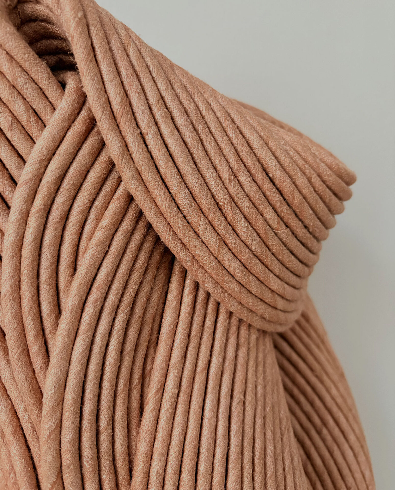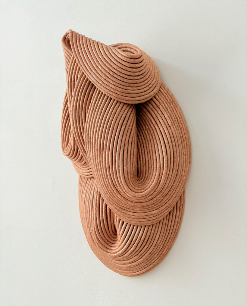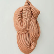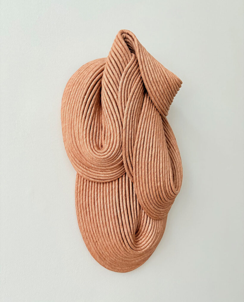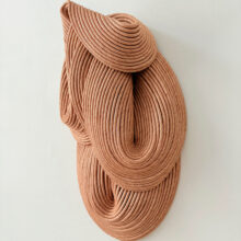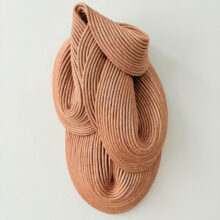 Sini Villi (b. 1980, Nivala) is a textile artist based in Helsinki, Finland. In her work Villi uses handmade natural ribbon to create three-dimensional textile wall sculptures. The ribbon is layered, sewn and shaped into a sculpture, which, when hardened from within, retains its unique form. The visual language of the textile sculptures draws its inspiration from Sini Villi’s roots in Northern Ostrobothnia, by the vast and silent natural landscape. Every autumn large fields are ploughed, forming softly rhythmic grooves. The colour scheme becomes one-dimensional, but the adjacent shapes create a visually interesting and soothing view. In the spring, life fills the ground again and the colours return.